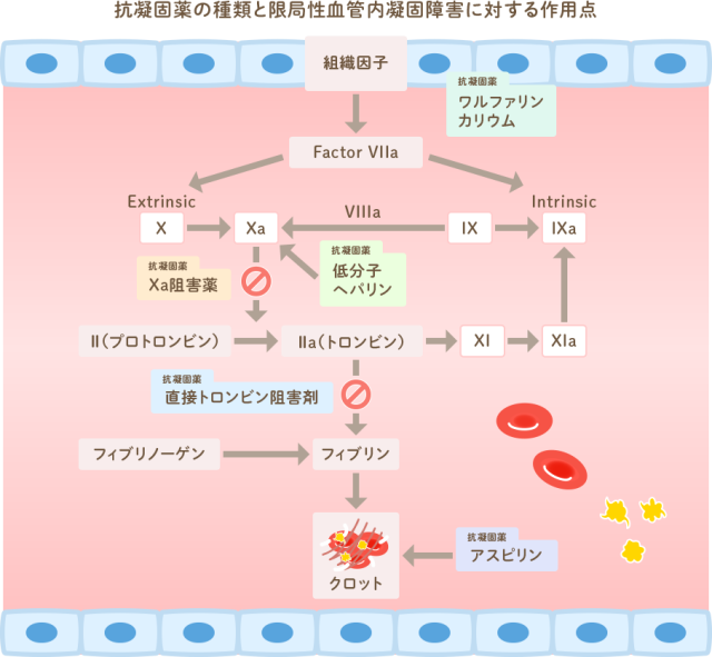 関連用語 抗凝固療法、血栓症、限局性血管内凝固障害(LIC)、深部静脈血栓症(DVT)、静脈石、ヘパリン起因性血小板減少症(HIT)